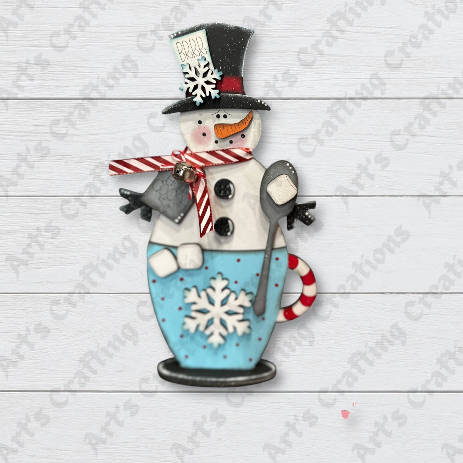 Brighten up your holiday décor with the playful Snowman in Mug Shelf Sitter. This adorable snowman cozies inside a warm hot cocoa mug, happily holding a spoon with marshmallows. It’s a charming and festive piece that adds a sprinkle of winter magic to any shelf or tabletop.